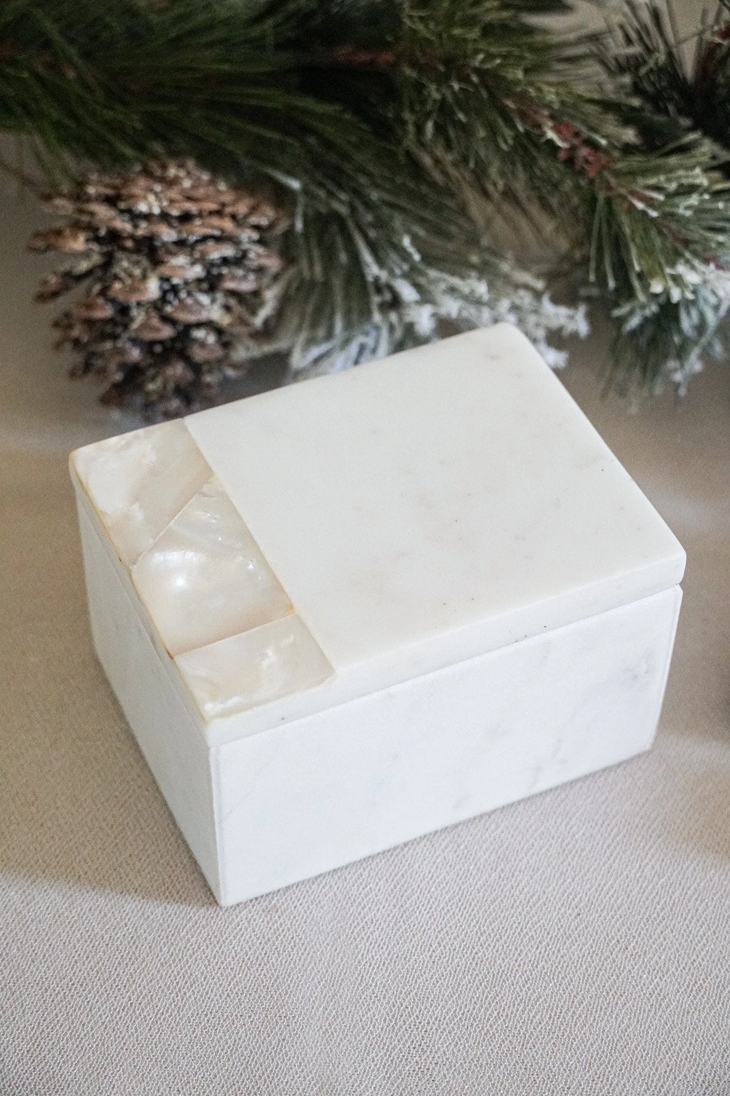 – MOP-14 Mother of pearl white marble decor box, Small – 1pc