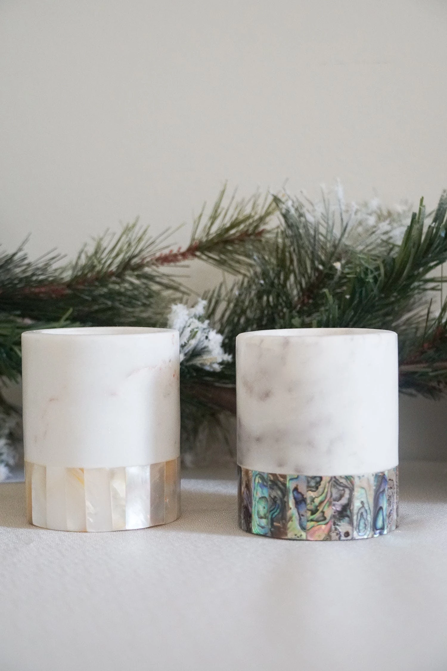– MOP-19S White marble grey mother of pearl candle holder, Small – 1pc
