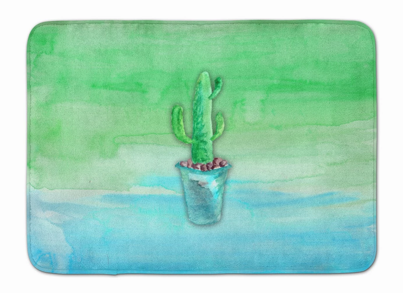 Cactus Teal and Green Watercolor Machine Washable Memory Foam Mat. Artwork on the floor of your bathroom. Plush top and very comfortable to the touch. This is a Machine Washable bath or kitchen mat that is made with Memory Foam. It features a top surface in coral fleece and is made using 100% microfiber fabric. The entire surface is full-cushion memory foam, ensuring the ultimate in comfort. The underside of the mat features a non-skid SBR surface for the best in safety and convenience. It measures 19 inches by 27 inches and is Proudly Printed in the USA with artwork from our licensed Artists. The design is dyed into the fibers of the rug for a long lasting image. Wash in cold water and dry in the dryer on low temp. Follow the care instructions on the product tag.