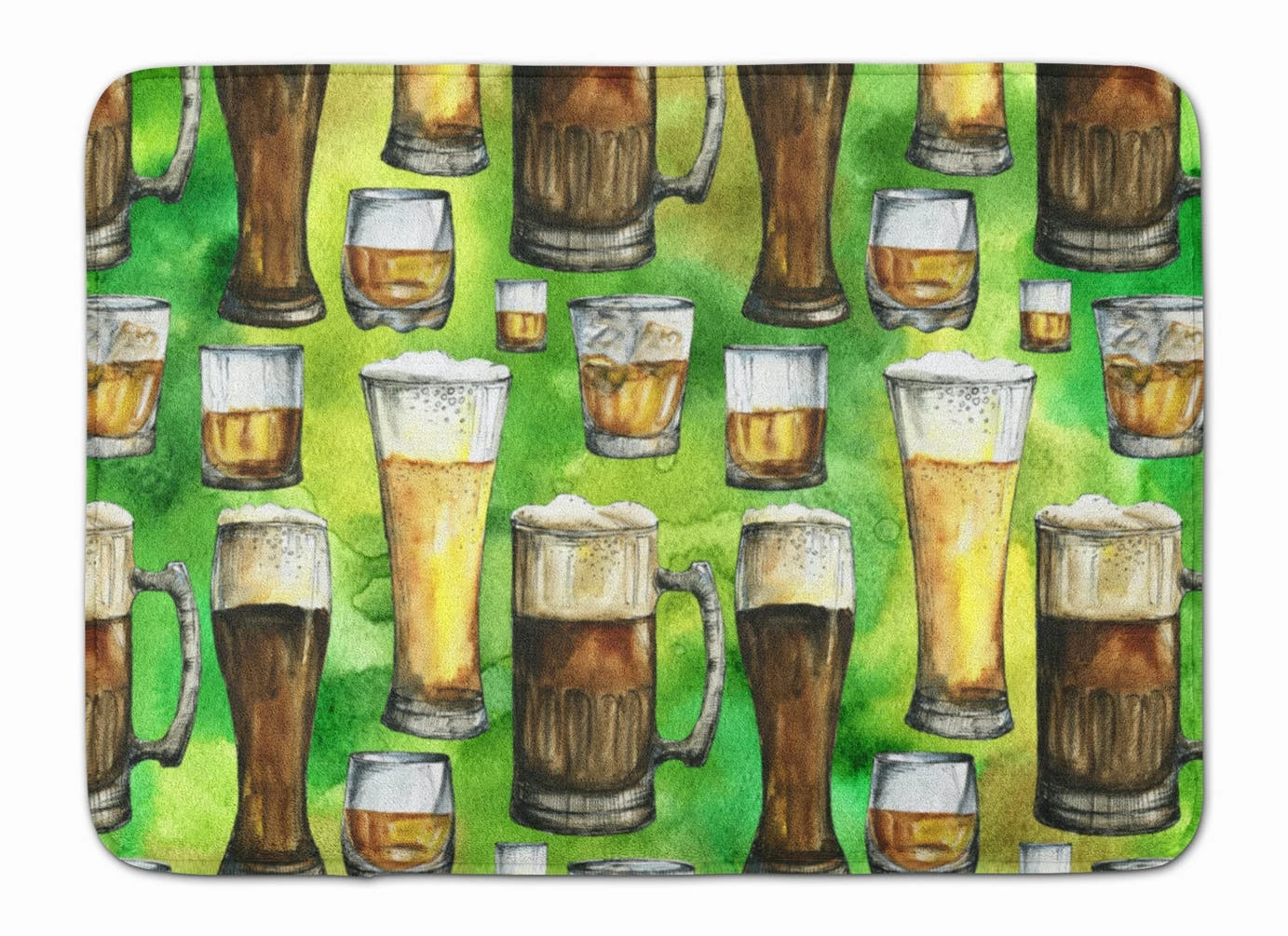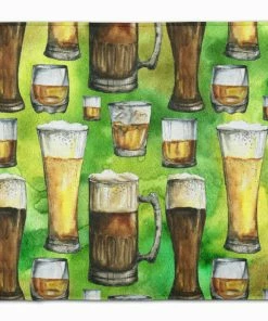 Irish Beers Machine Washable Memory Foam Mat. Celebrate St Patrick’s Day with this St Patrick’s Day Floor Mat. Artwork on the floor of your bathroom. Plush top and very comfortable to the touch. This is a Machine Washable bath or kitchen mat that is made with Memory Foam. It features a top surface in coral fleece and is made using 100% microfiber fabric. The entire surface is full-cushion memory foam, ensuring the ultimate in comfort. The underside of the mat features a non-skid SBR surface for the best in safety and convenience. It measures 19 inches by 27 inches and is Proudly Printed in the USA with artwork from our licensed Artists. The design is dyed into the fibers of the rug for a long lasting image. Wash in cold water and dry in the dryer on low temp. Follow the care instructions on the product tag.