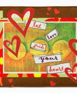 Let Love Guide Your Heart Valentine’s Day Machine Washable Memory Foam Mat. Celebrate Valentine’s Day with this Valentine’s Day Floor Mat. Artwork on the floor of your bathroom. Plush top and very comfortable to the touch. This is a Machine Washable bath or kitchen mat that is made with Memory Foam. It features a top surface in coral fleece and is made using 100% microfiber fabric. The entire surface is full-cushion memory foam, ensuring the ultimate in comfort. The underside of the mat features a non-skid SBR surface for the best in safety and convenience. It measures 19 inches by 27 inches and is Proudly Printed in the USA with artwork from our licensed Artists. The design is dyed into the fibers of the rug for a long lasting image. Wash in cold water and dry in the dryer on low temp. Follow the care instructions on the product tag.