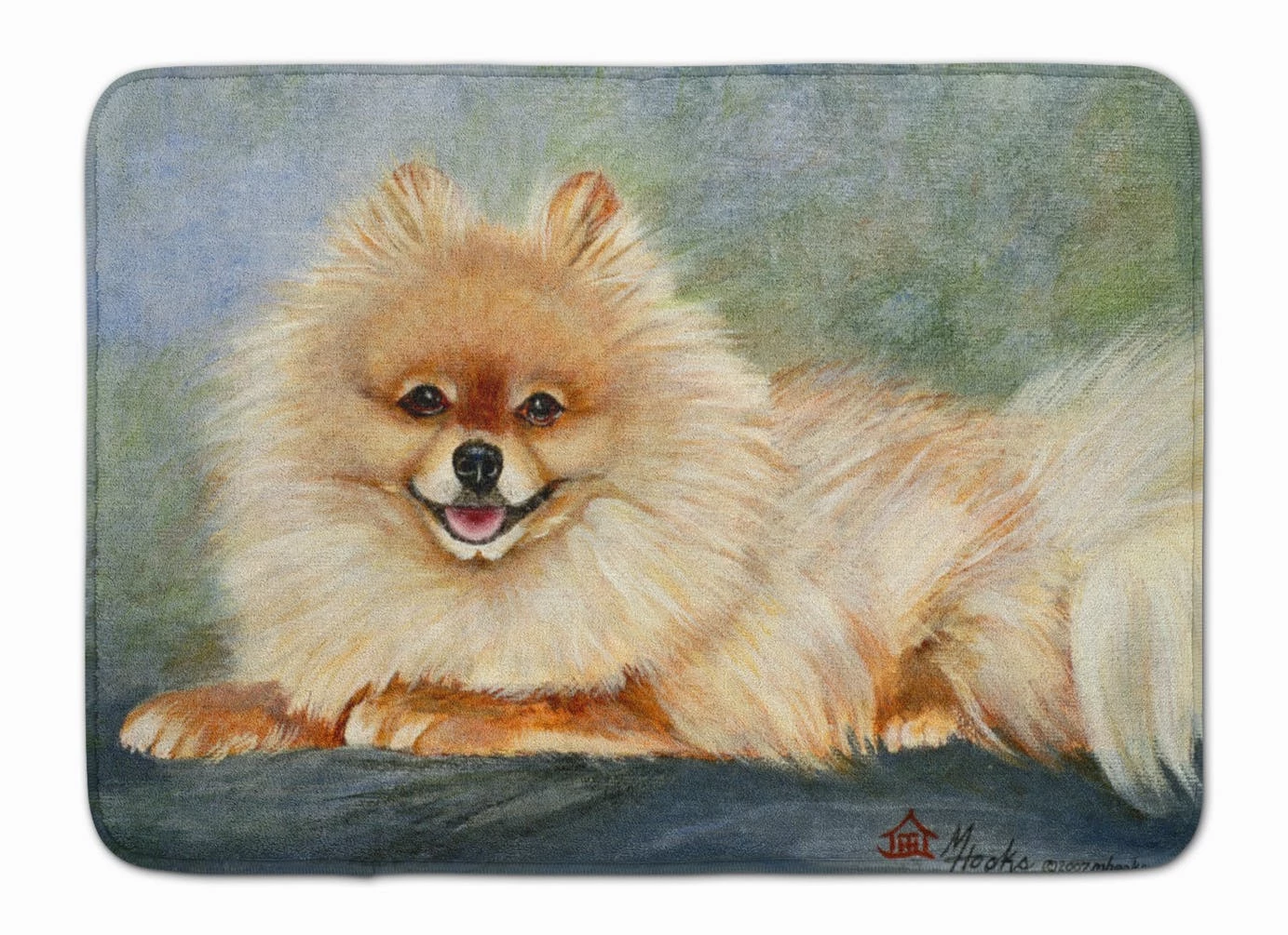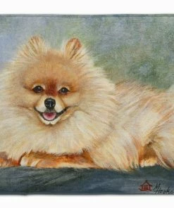 Pomeranian Full Body Machine Washable Memory Foam Mat. Machine Washable Memory Foam Mat featuring breed specific Pomeranian artwork. Artwork on the floor of your bathroom. Plush top and very comfortable to the touch. This is a Machine Washable bath or kitchen mat that is made with Memory Foam. It features a top surface in coral fleece and is made using 100% microfiber fabric. The entire surface is full-cushion memory foam, ensuring the ultimate in comfort. The underside of the mat features a non-skid SBR surface for the best in safety and convenience. It measures 19 inches by 27 inches and is Proudly Printed in the USA with artwork from our licensed Artists. The design is dyed into the fibers of the rug for a long lasting image. Wash in cold water and dry in the dryer on low temp. Follow the care instructions on the product tag.