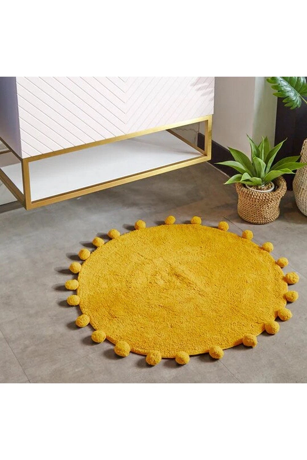 Featuring a unique circular shape with pom-pom edging, this 100% cotton bath mat has a wonderfully soft underfoot, and is also quick-drying with an anti-slip quality, keeping it in place on your bathroom floor.