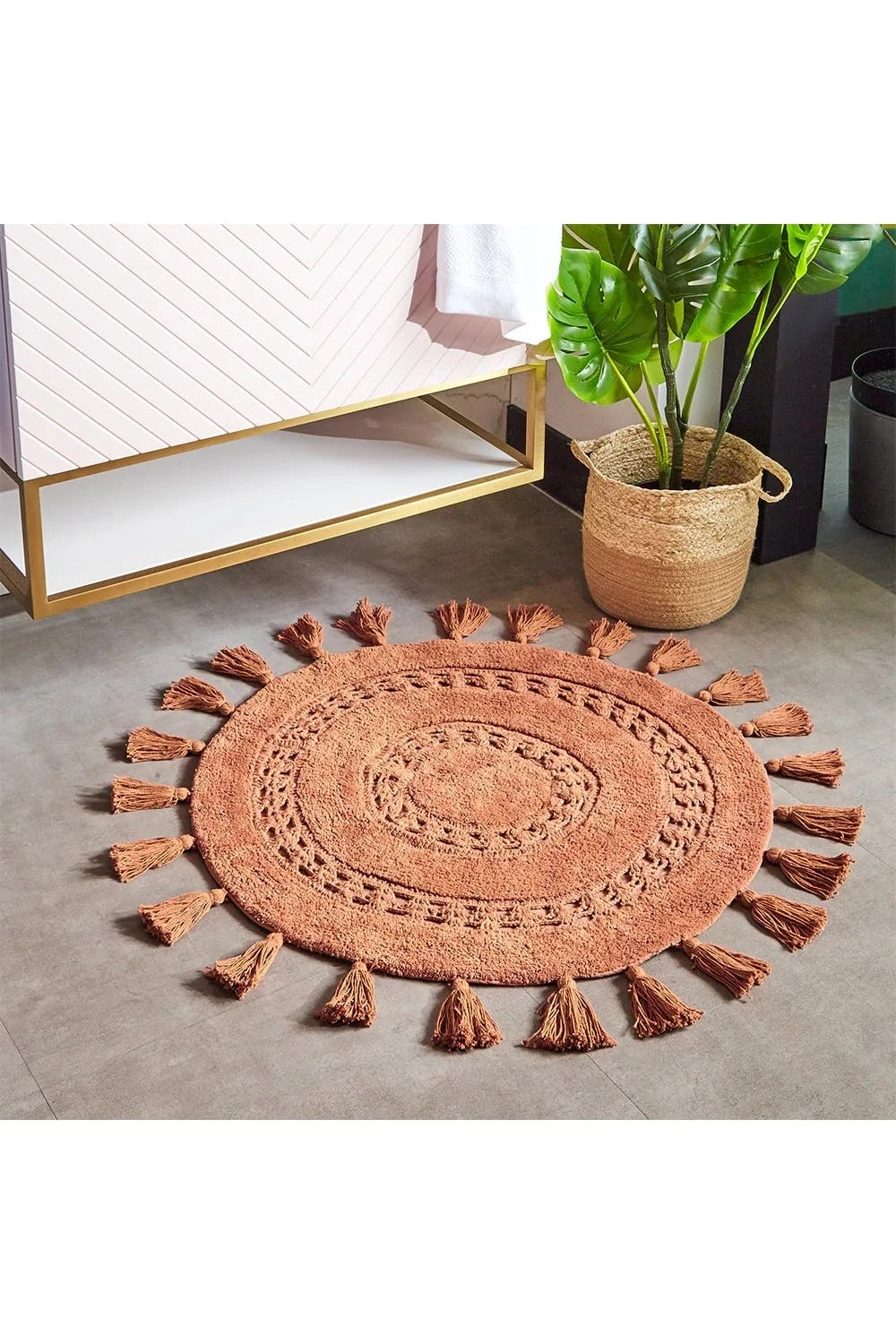 – 1 x circle tassel bath mat in pecan