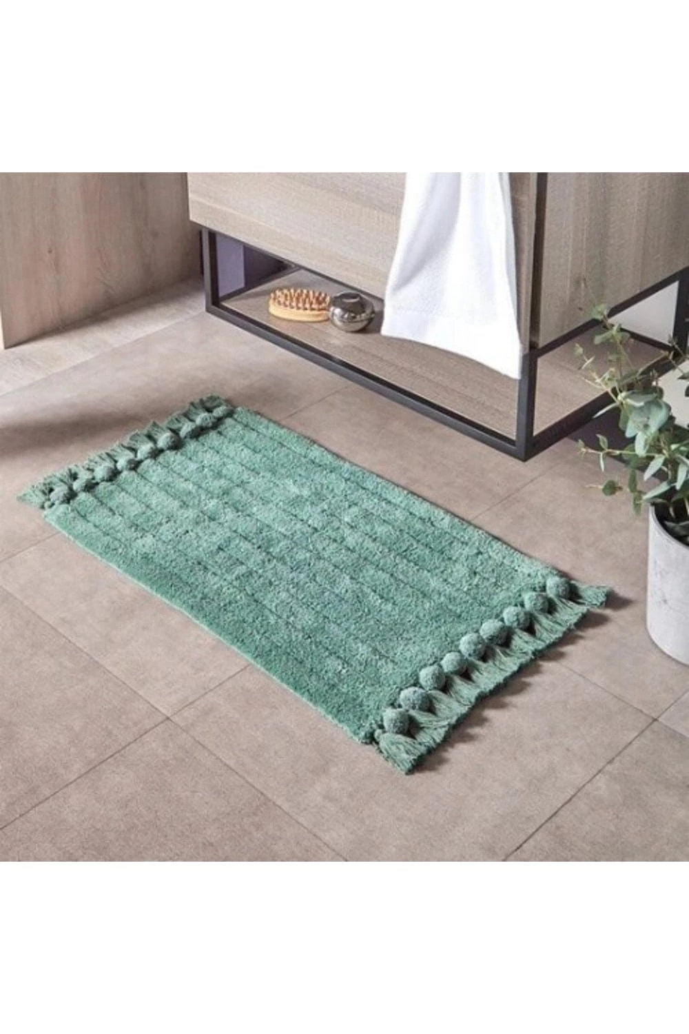 Add a stylish yet decorative touch to your bathroom interior with this pleasantly soft pure cotton ribbed bath mat. With its tasselled edging and eye catching colour palette, this design this design has a wonderfully soft underfoot, and is also quick drying with an anti slip quality, keeping it in place on your bathroom floor.