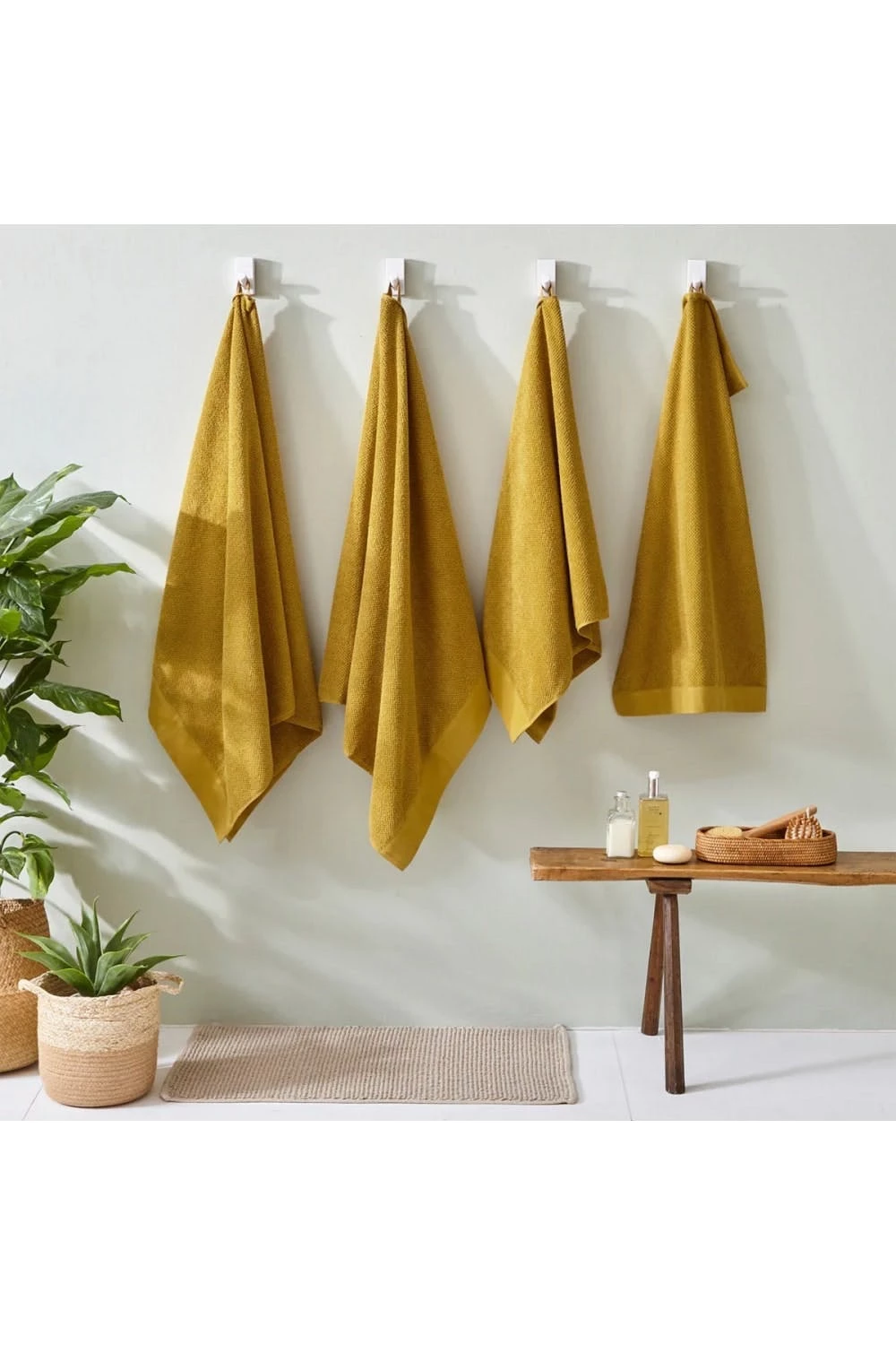 – 1 x textured bath towel in Ochre, measuring 28″ x 51″