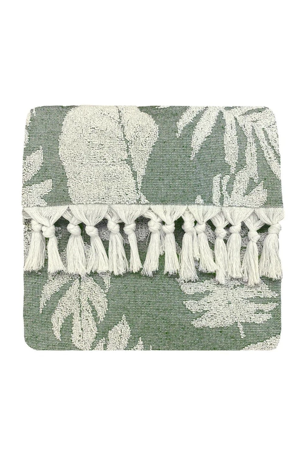 Taking inspiration from botanics and Hamman interior styles, the Tropics bath towel features tonal foliage and a botanical print and is complete with a tassel trim – making this design an iconic addition to your bathroom. This product is certified by OEKO-TEX® showing it has been sustainably made.