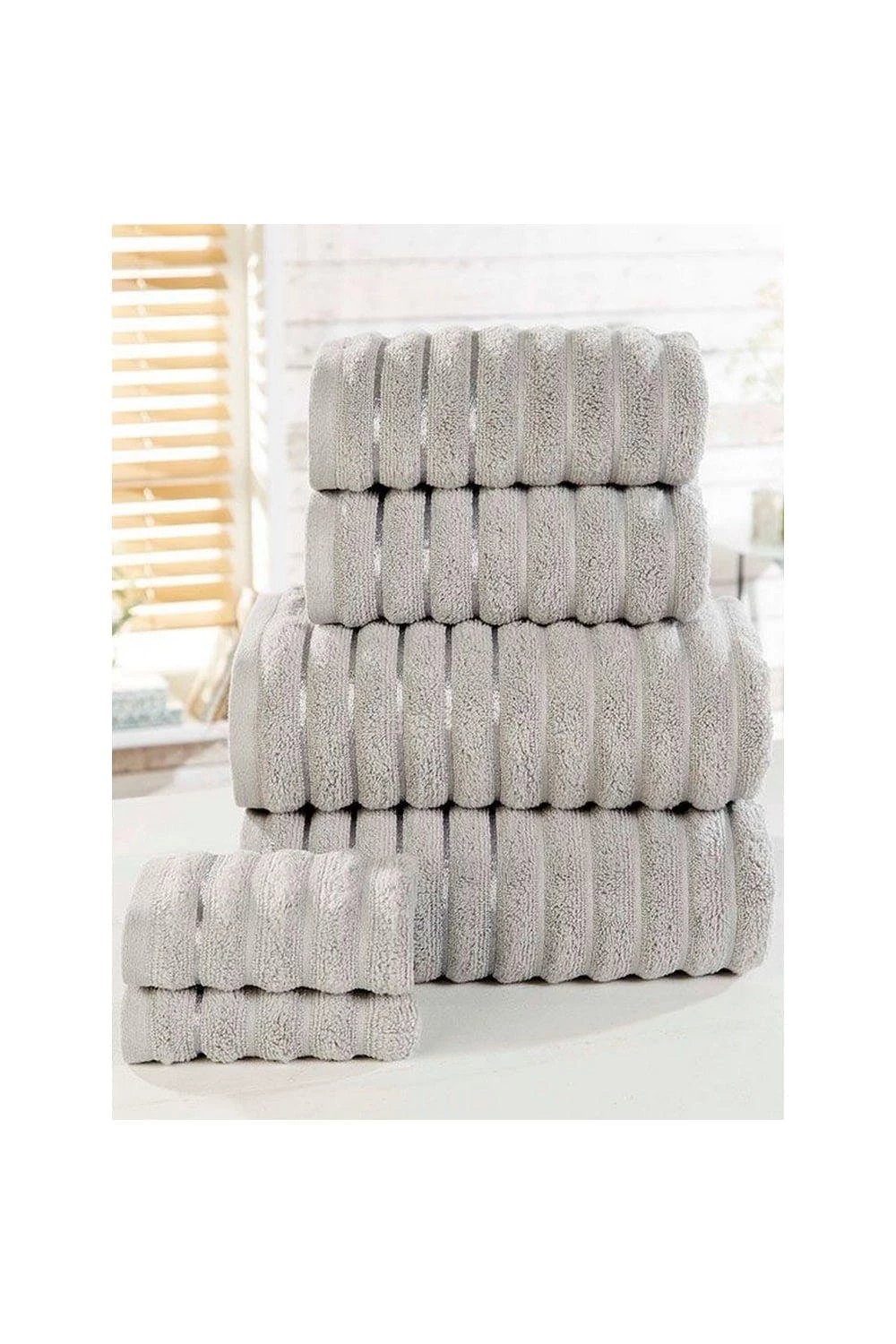 – Fabric Technology: durable.- Fabric: Ribbed, zero twist.- 550 Gsm.- Contents: 2 bath towel, 2 face towel, 2 hand towel.- Size: One size