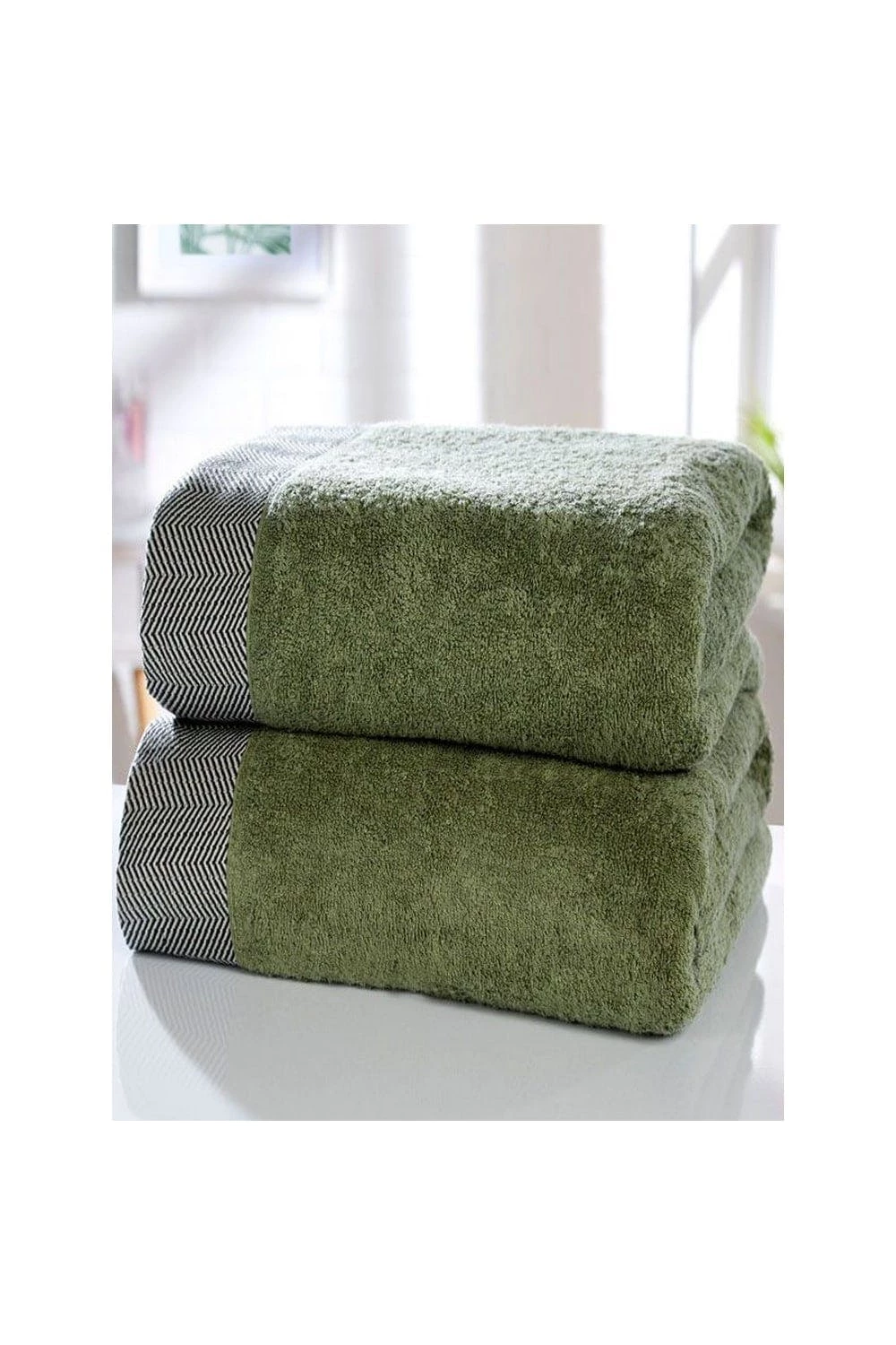 – A stylish towel set with chevron border